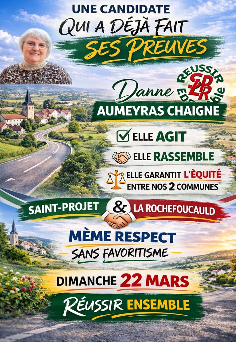 Une liste menée par Danne Aumeyras-Chaigne, candidate engagée pour La Rochefoucauld , connue pour son action avec l’association CIRCUL 141, mais également pour la création du Festival des Points Oubliés.